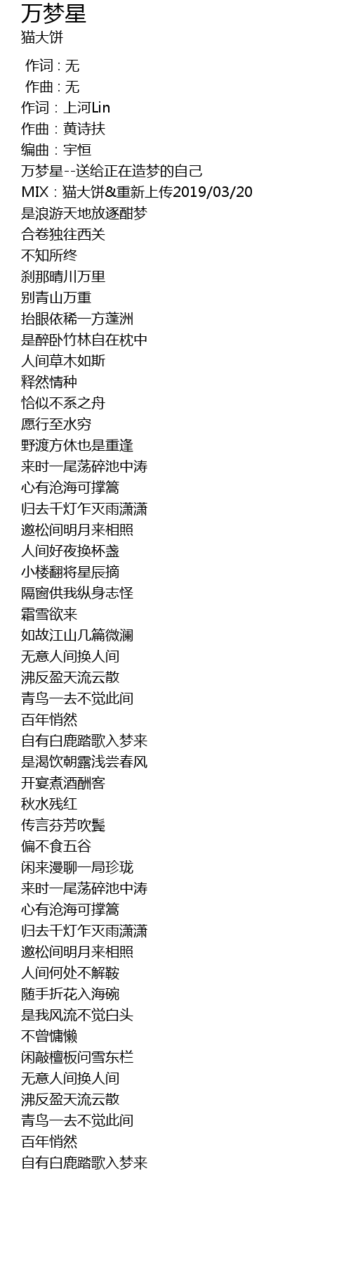 | [00:06.43] | 万梦星--送给正在造梦的自己 |