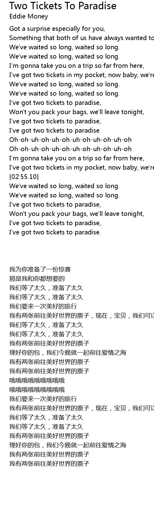 I've got two tickets to paradise. |