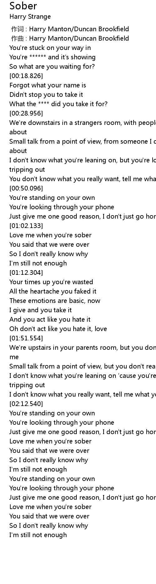 | [02:25.396] | Love me when you're sober |
