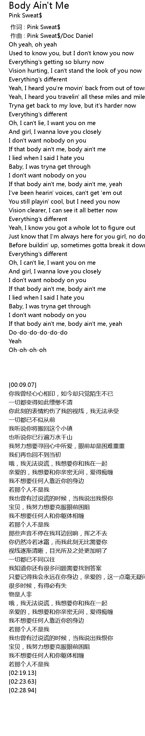 | [00:01.000] | zuò qǔ : Pink Sweat Doc Daniel |