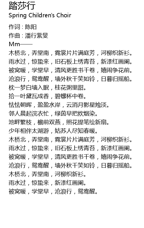 | mu qiao bei, long tang nan, ni chang pian pian man ting fang, he liu zhi xin shan. | |