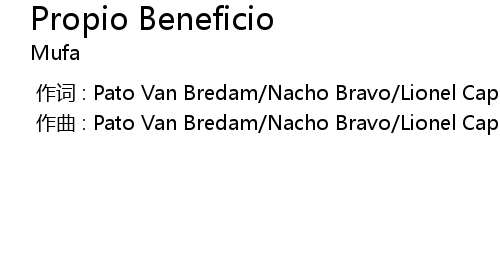 | [00:00.000] | zuo qu : Pato Van Bredam Nacho Bravo Lionel Capodarco Santiago Bravo |