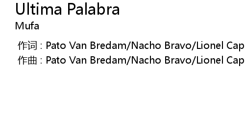| [00:00.000] | zuo qu : Pato Van Bredam Nacho Bravo Lionel Capodarco Santiago Bravo |