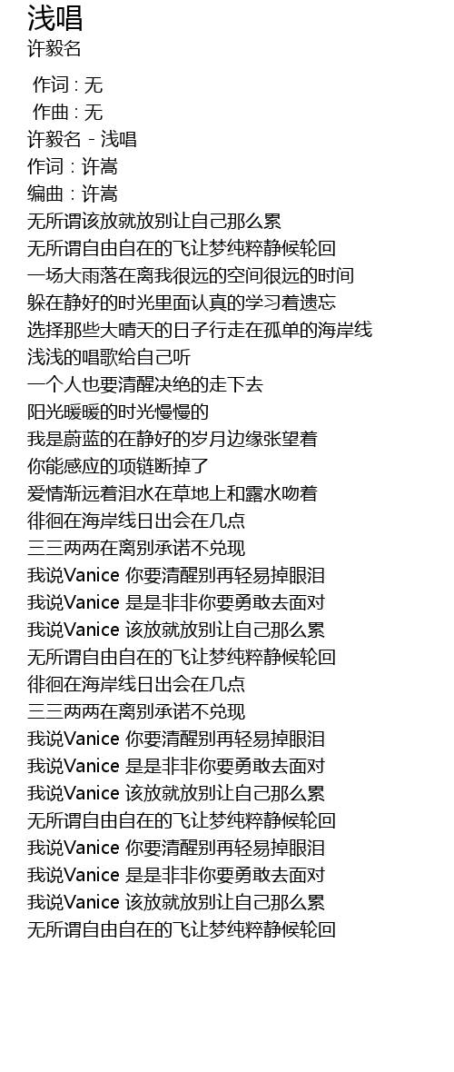 | [00:02.88] | 许毅名 - 浅唱 |