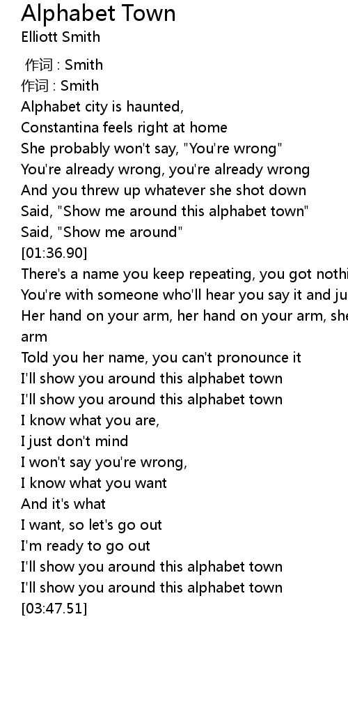 | [01:20.44] | Said, "Show me around this alphabet town" |