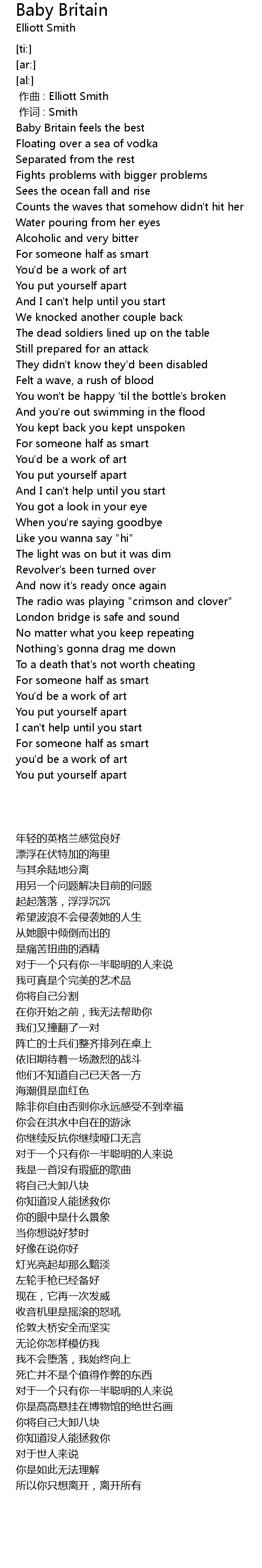 | [00:00.00] | 作曲 : Elliott Smith |