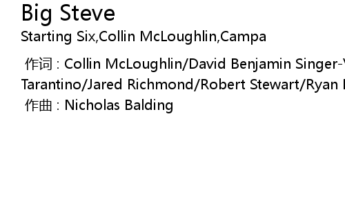 | [00:00.000] | zuo ci : Collin McLoughlin David Benjamin SingerVine Greyson Tarantino Jared Richmond Robert Stewart Ryan Bremond Steven Yaris |