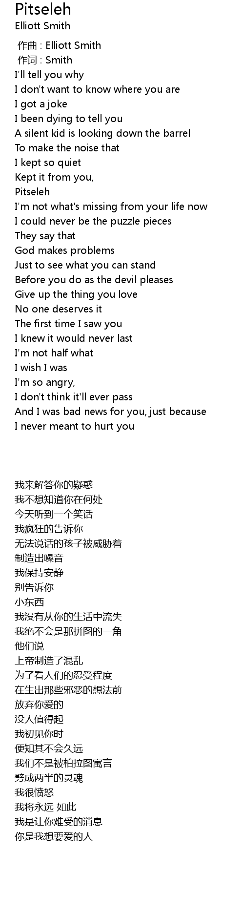| [00:00.00] | zuò qǔ : Elliott Smith |