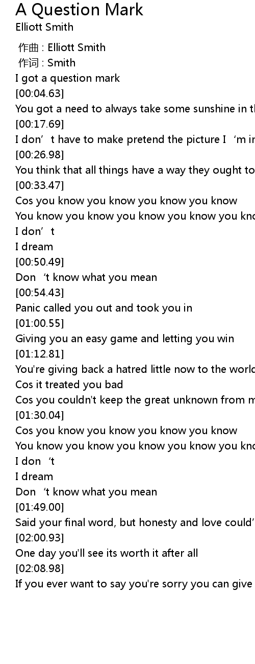 | [00:00.98] | I got a question mark |
