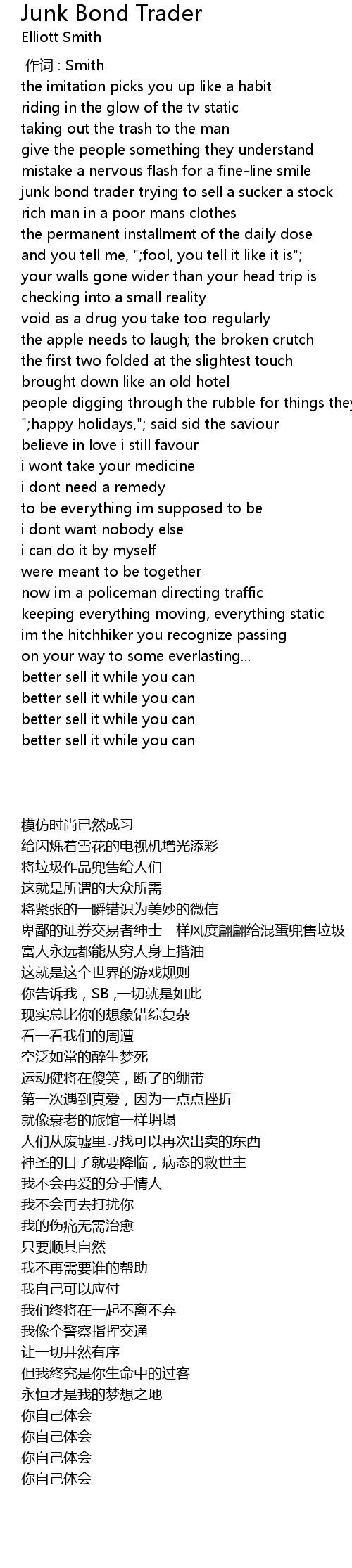 | [00:46.480] | junk bond trader trying to sell a sucker a stock |