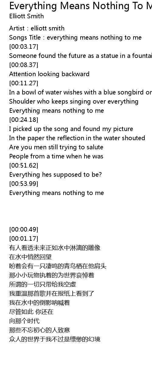 | [00:01.17] | Songs Title: everything means nothing to me |