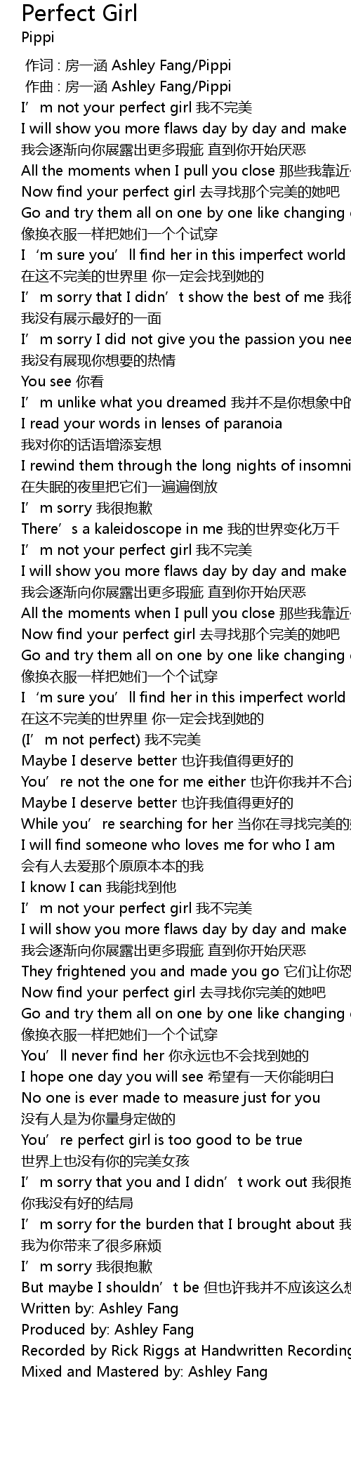 | [02:01.945] | I' m not your perfect girl wǒ bù wán měi |