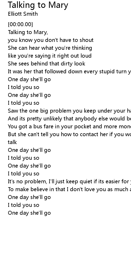 Talking to Mary, |