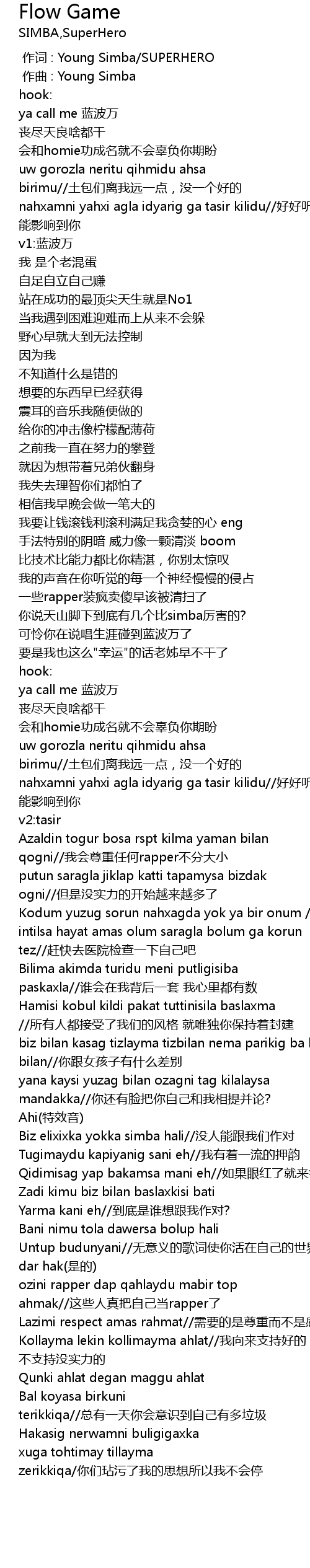 | [00:00.000] | 作词 : Young Simba/SUPERHERO |