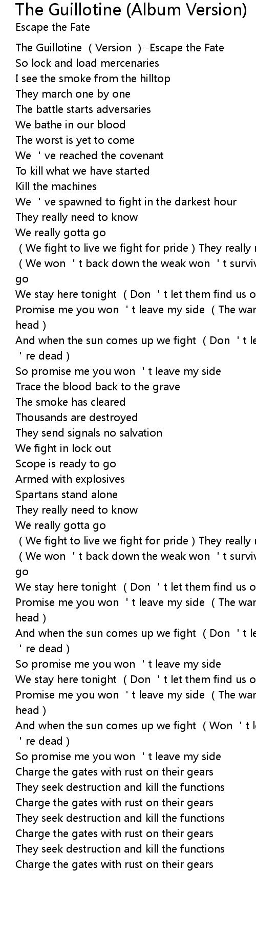 | [00:00.00] | The Guillotine (Version )-Escape the Fate |