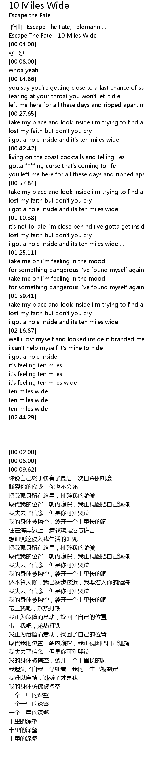 | [00:02.00] | Escape The Fate 10 Miles Wide |