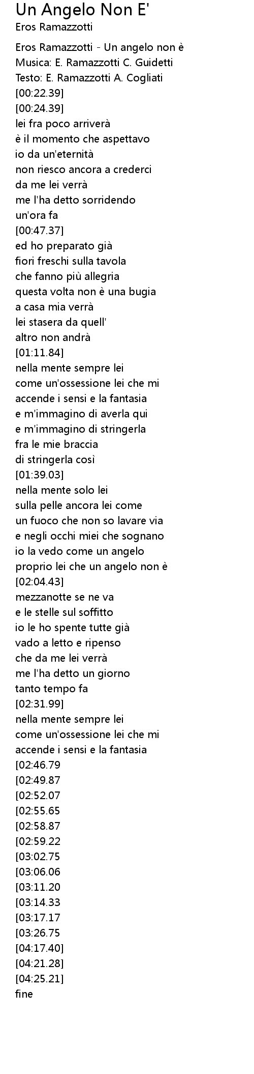 | [00:00.00] | Eros Ramazzotti - Un angelo non è |
