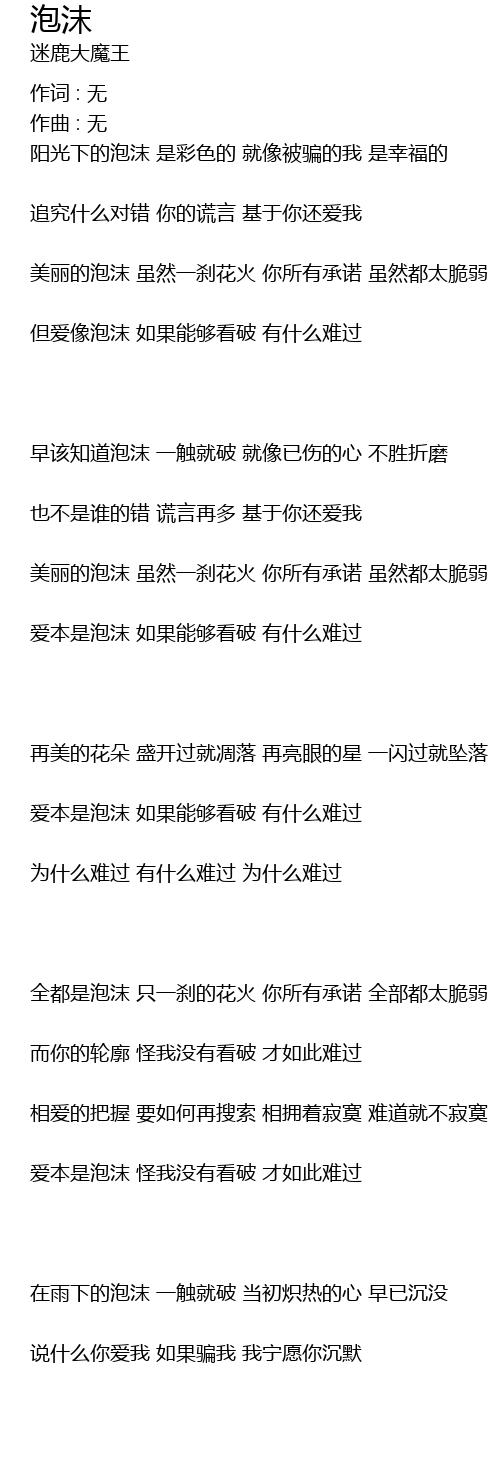 | 爱本是泡沫 如果能够看破 有什么难过 | |