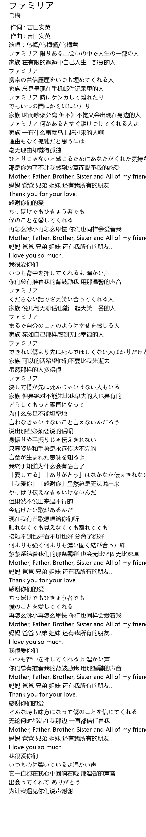 | [02:55.775] | 妈妈 爸爸 兄弟 姐妹 还有我所有的朋友… |