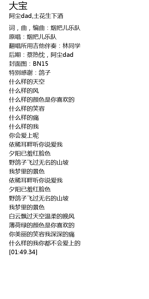 | [00:00.25] | 词,曲,编曲:烟把儿乐队 |