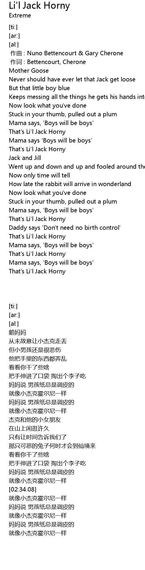 | [02:39.34] | That' s Li' l Jack Horny |