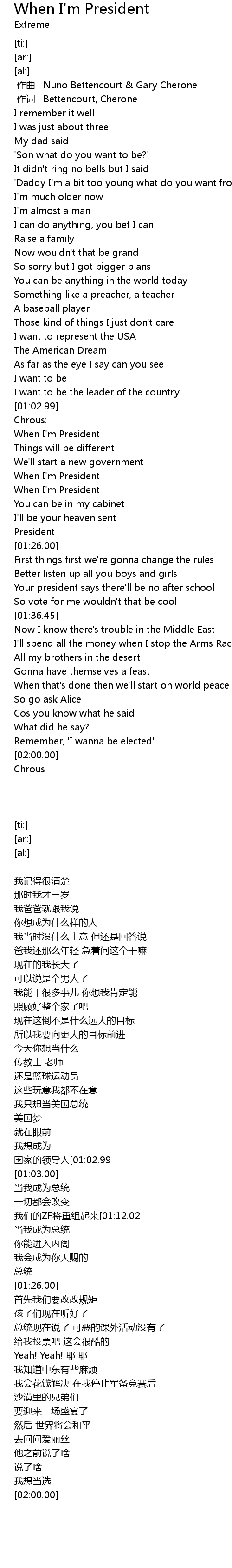 | [01:58.42] | Remember, 'I wanna be elected' |