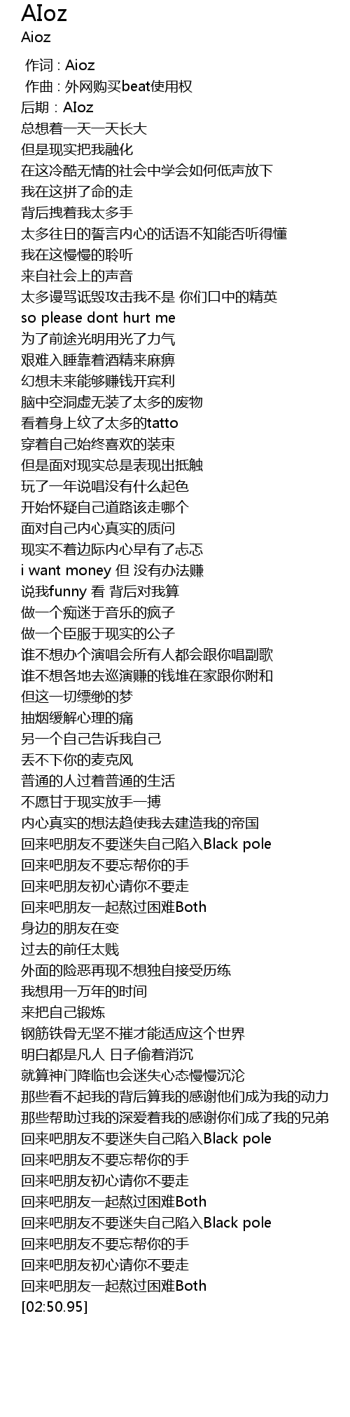 | [02:21.04] | hui lai ba peng you bu yao mi shi zi ji xian ru Black pole |