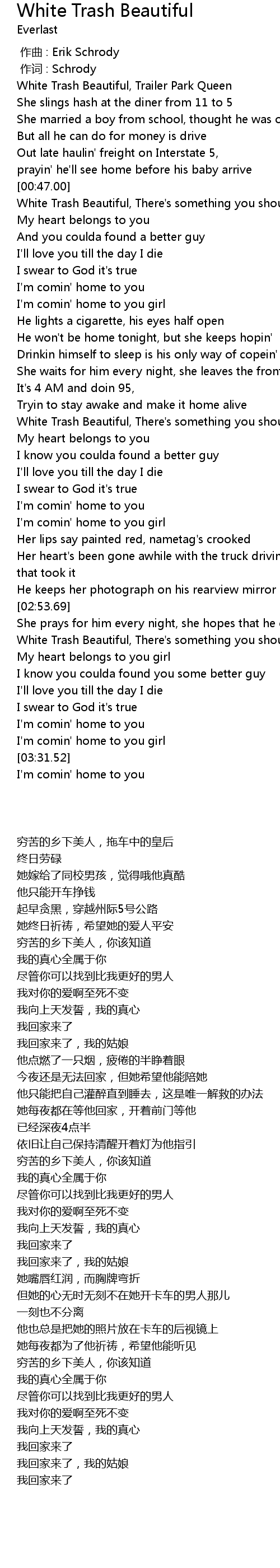 | [03:01.63] | White Trash Beautiful, There' s something you should know |