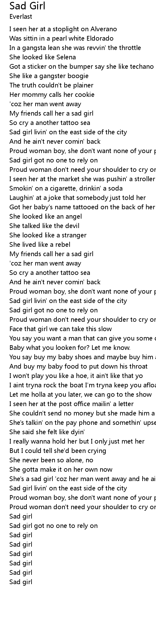 Sad girl livin' on the east side of the city |