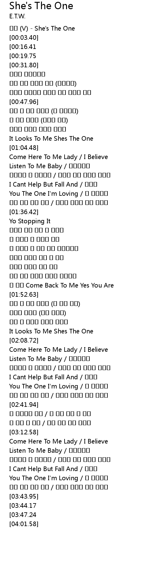 | [00:59.98] | It Looks To Me Shes The One |