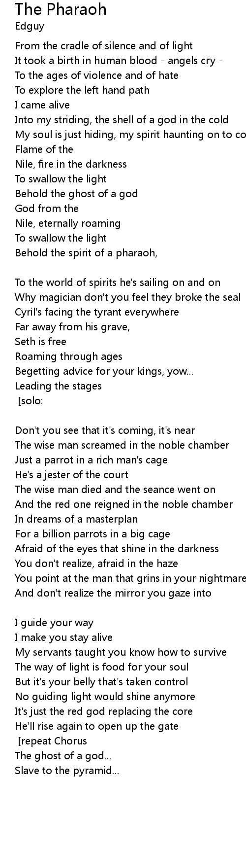 | Behold the spirit of a pharaoh, | |