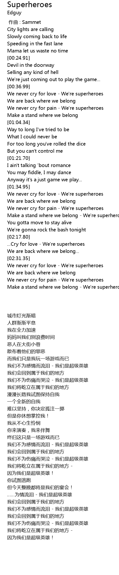 | [02:31.95] | We never cry for love - We're superheroes |