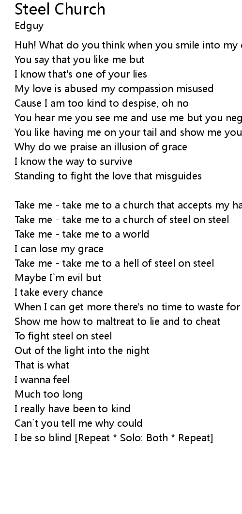 Take me - take me to a church of steel on steel |