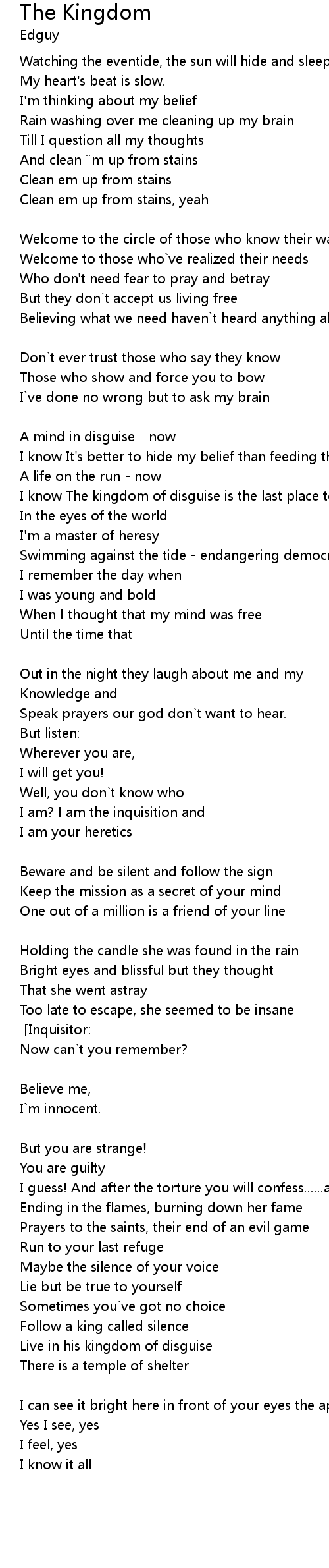| I know The kingdom of disguise is the last place to go | |