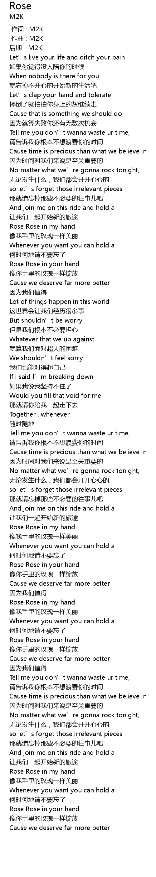 | [00:00.000] | 作词 : M2K |