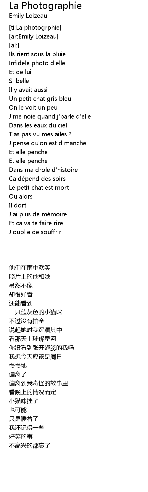 | [00:42.37] | J' me noie quand j' parle d' elle |