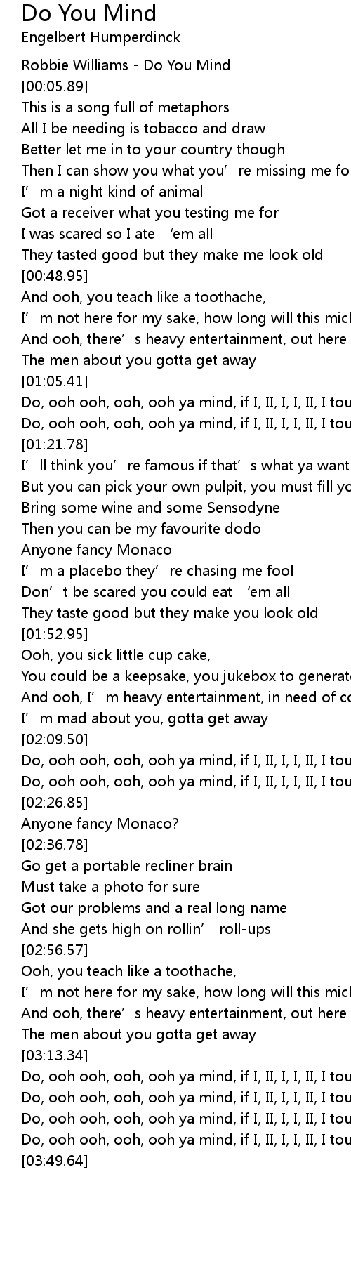 | [00:01.12] | Robbie Williams - Do You Mind |