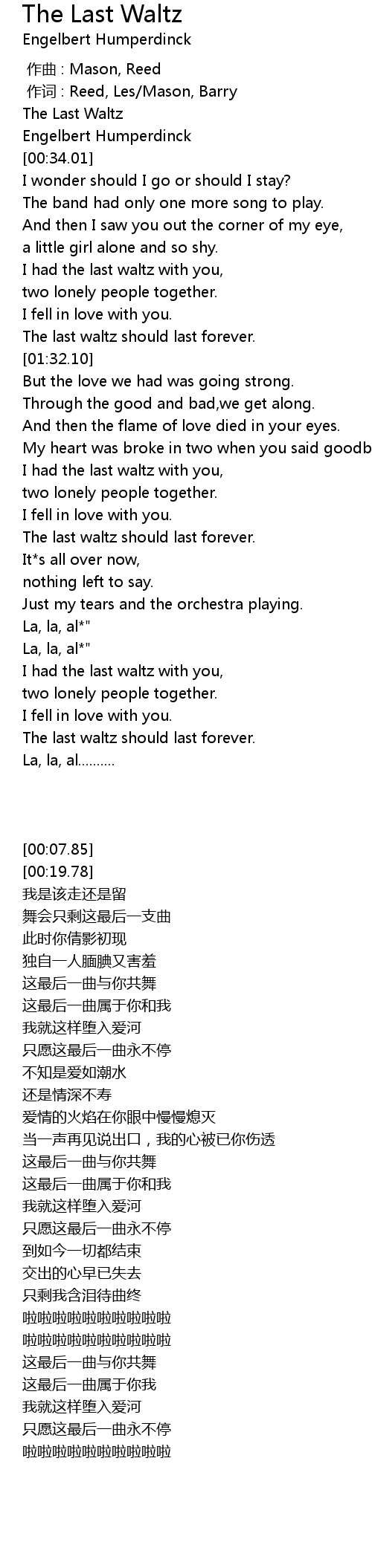 | [00:01.00] | 作词 : Reed, Les/Mason, Barry |