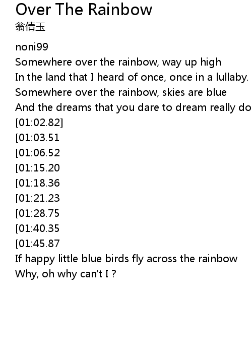 | [02:50.15][01:40.35] | Birds fly over the rainbow |