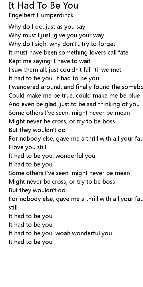 It had to be you, it had to be you |
