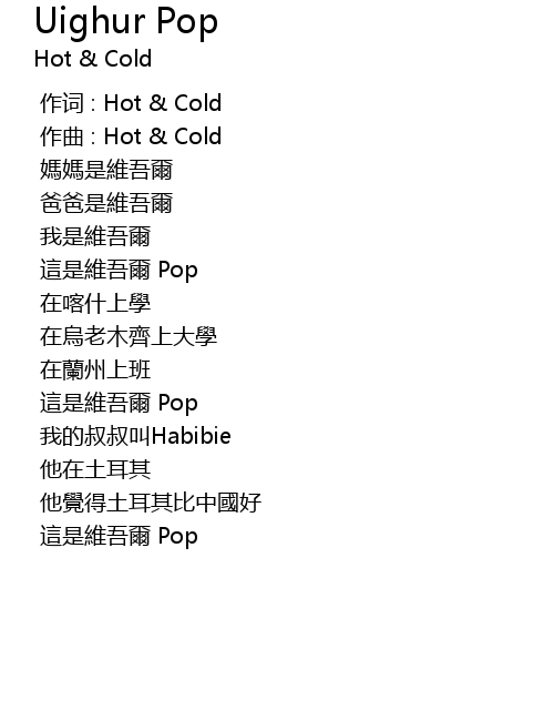 | [00:01.000] | zuò qǔ : Hot Cold |