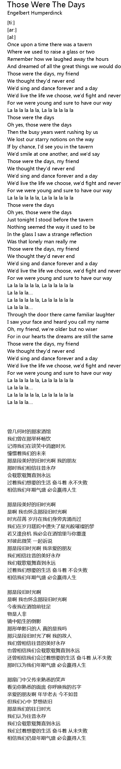 Those were the days, my friend |