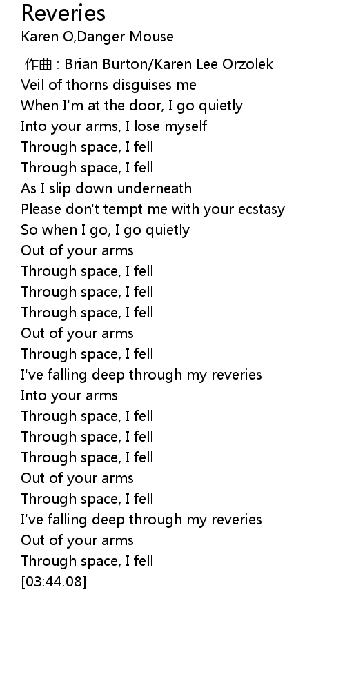| [01:50.38] | I' ve falling deep through my reveries |