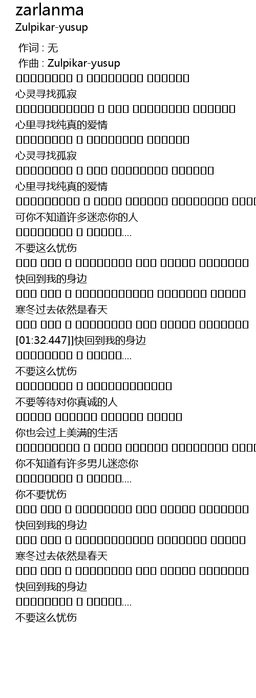 | [00:01.000] | 作曲 : Zulpikar-yusup |