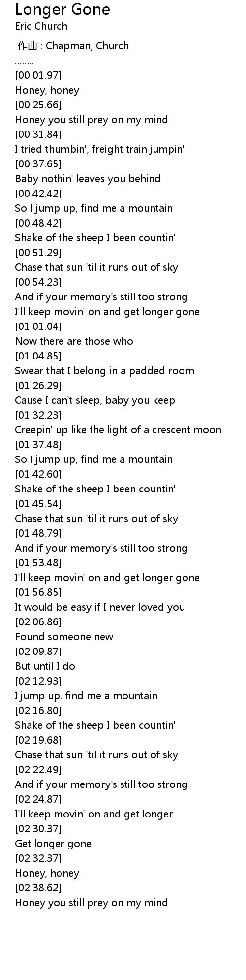| [02:31.62] | Get longer gone |