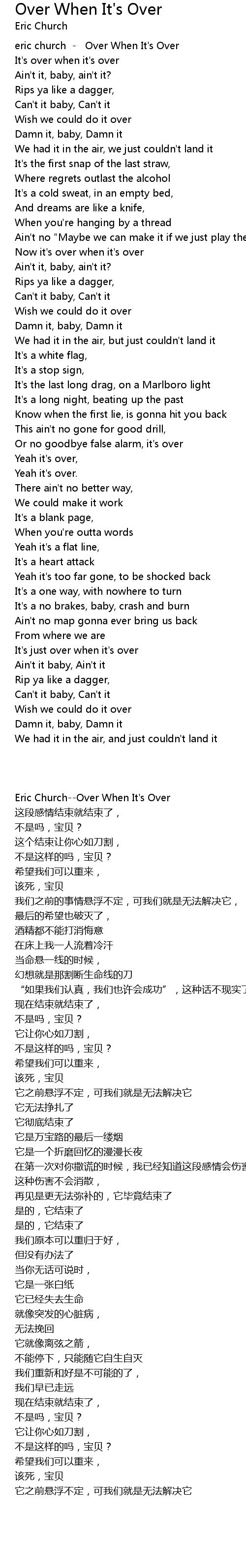 eric church - Over When It's Over |
