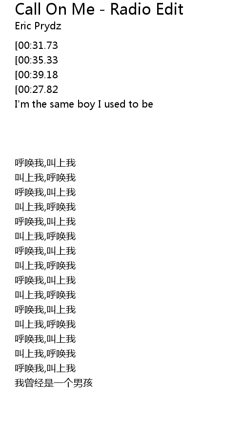 | [00:50.60][00:35.33][00:20.51][00:05.45] | call on me, call on me |