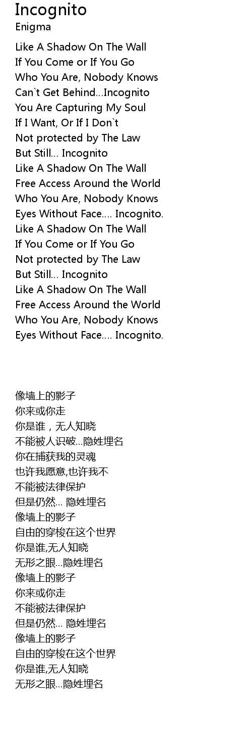 | [00:25.580] | Can t Get Behind Incognito |