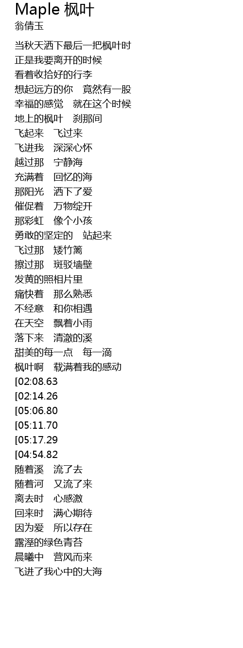 | [02:03.23] | 枫叶啊 载满着我的感动 |