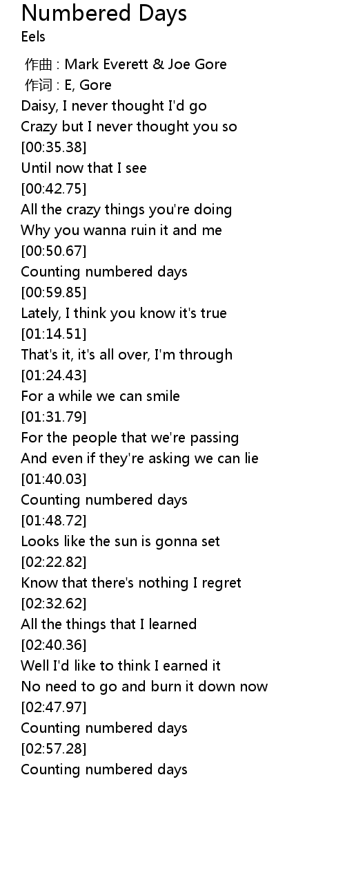 | [00:00.00] | 作曲 : Mark Everett & Joe Gore |